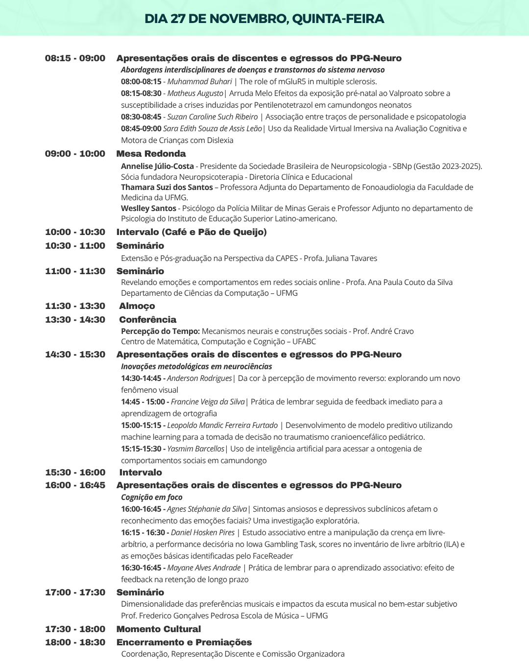 As informações sobre o evento estão em nosso Instagram.